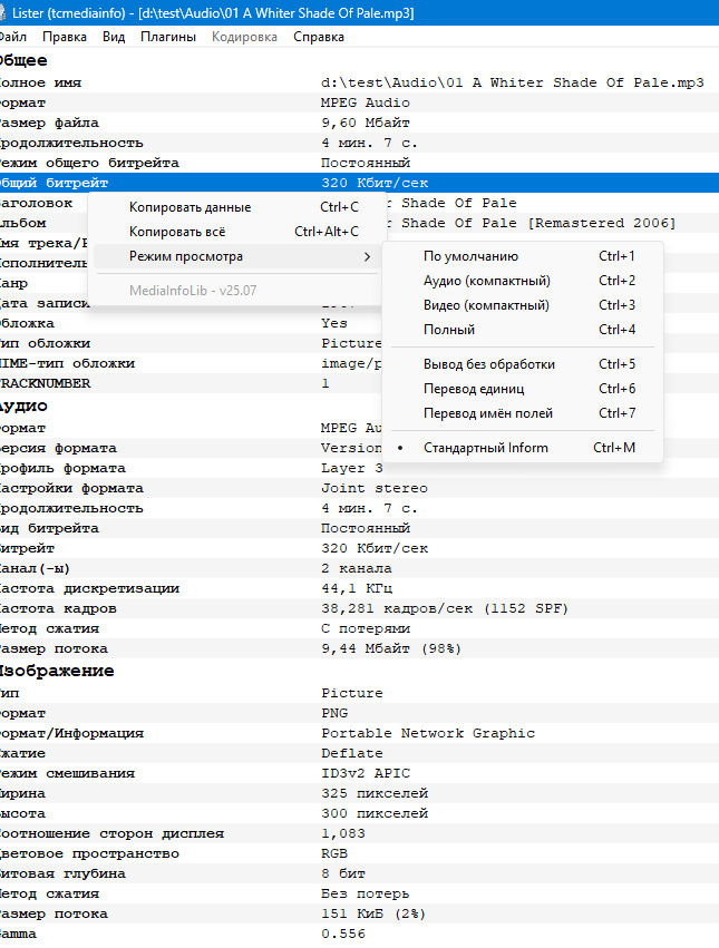 То что я писал имеет смысл только для плагина, который TCMediainfo, где можно настроить скриптовую колонку (или вывод в листере). |