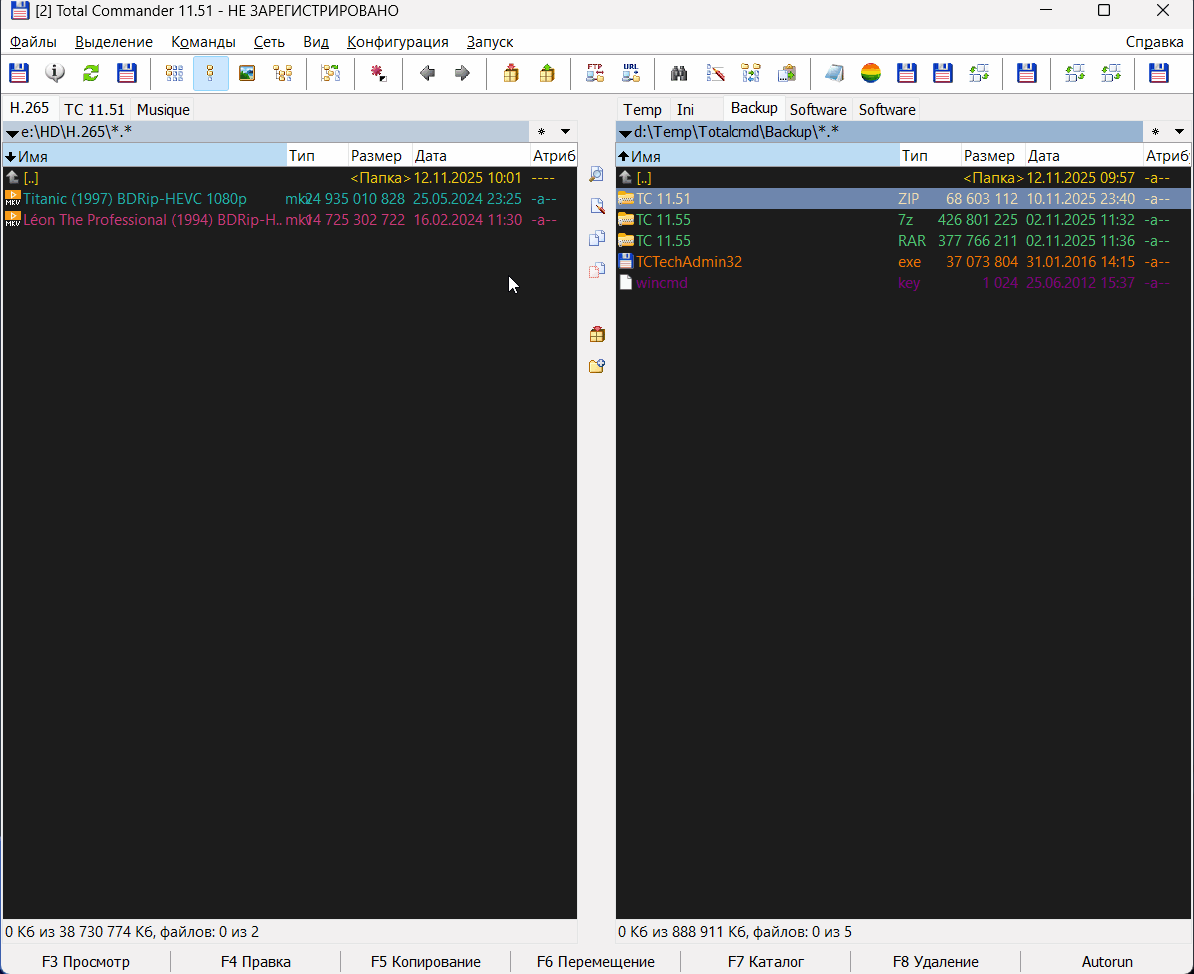 Титаник и Леон лежат ровно, чего не скажешь о бэкапах ТС - их словно пробили на перфокарте )